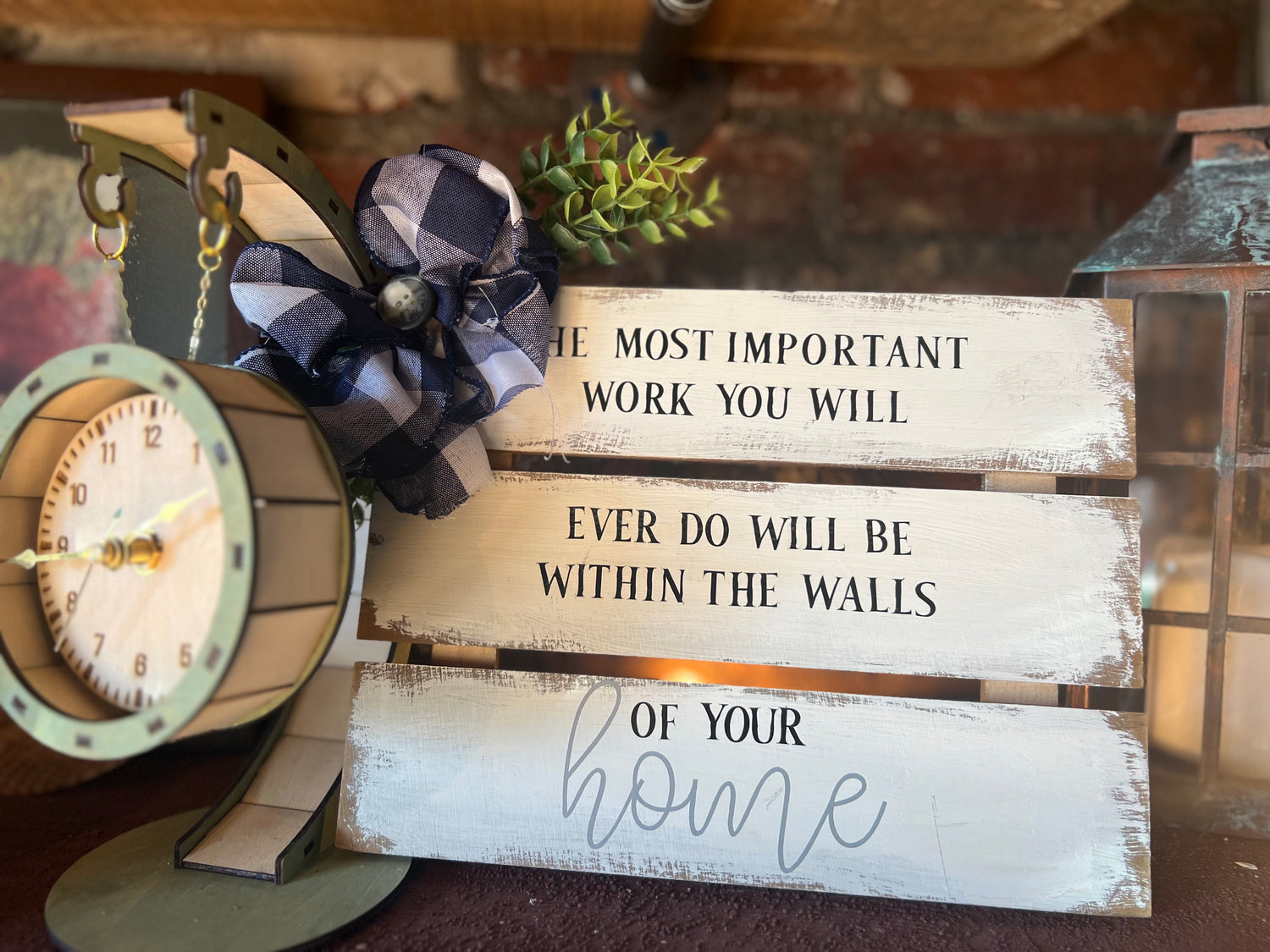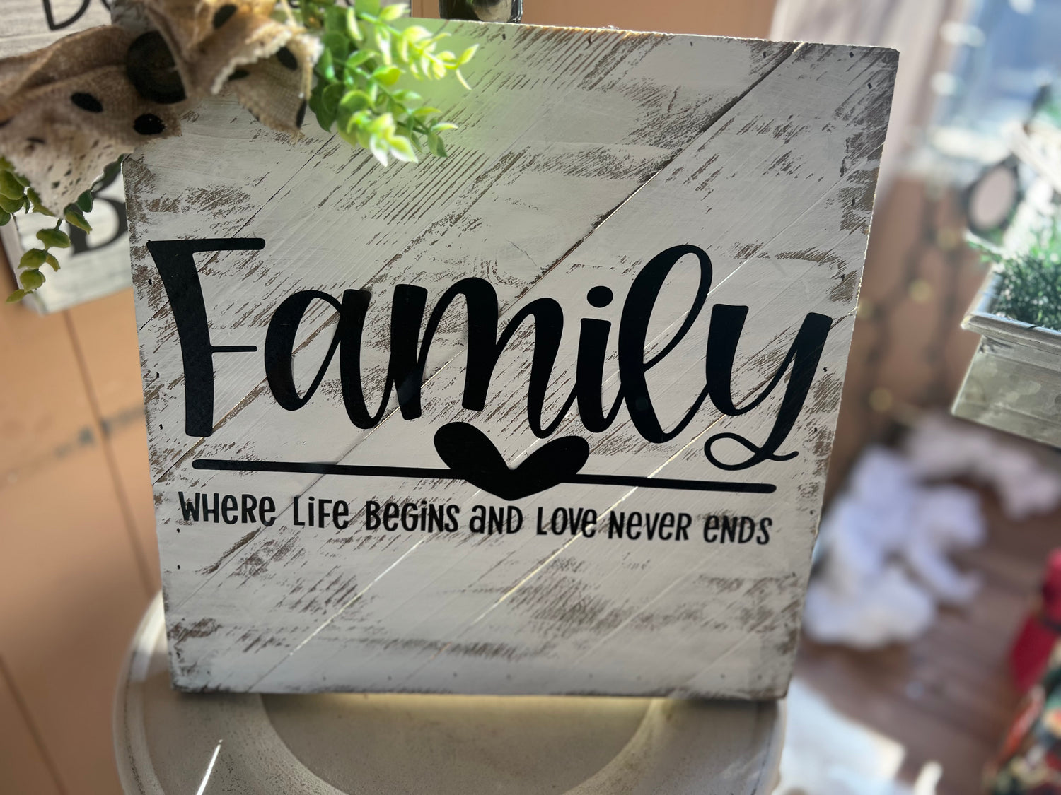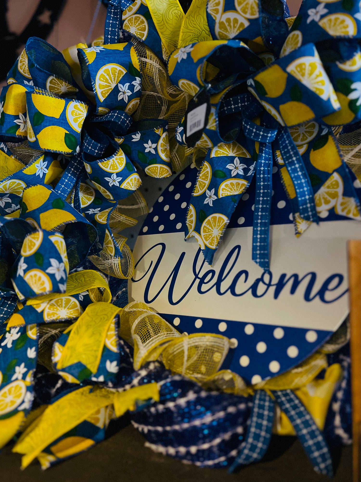 A variety of home sweet home wreaths, plaques, and wall hangings. In store and custom made orders available.